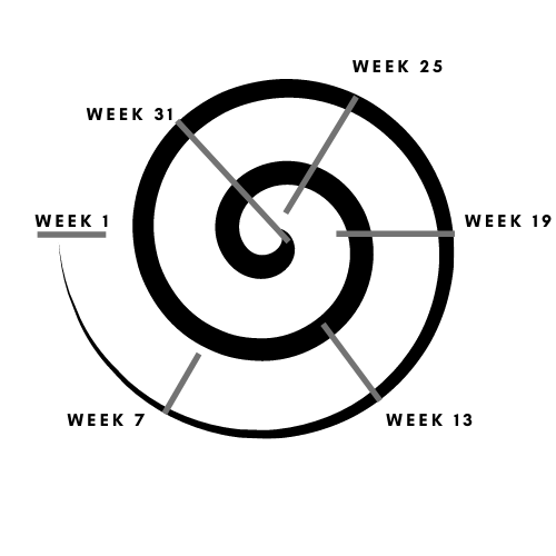 “a spiraling series of exercises that cycle back to key skillsets in a seemingly random sequence that adds layers of context and meaning at each turn”