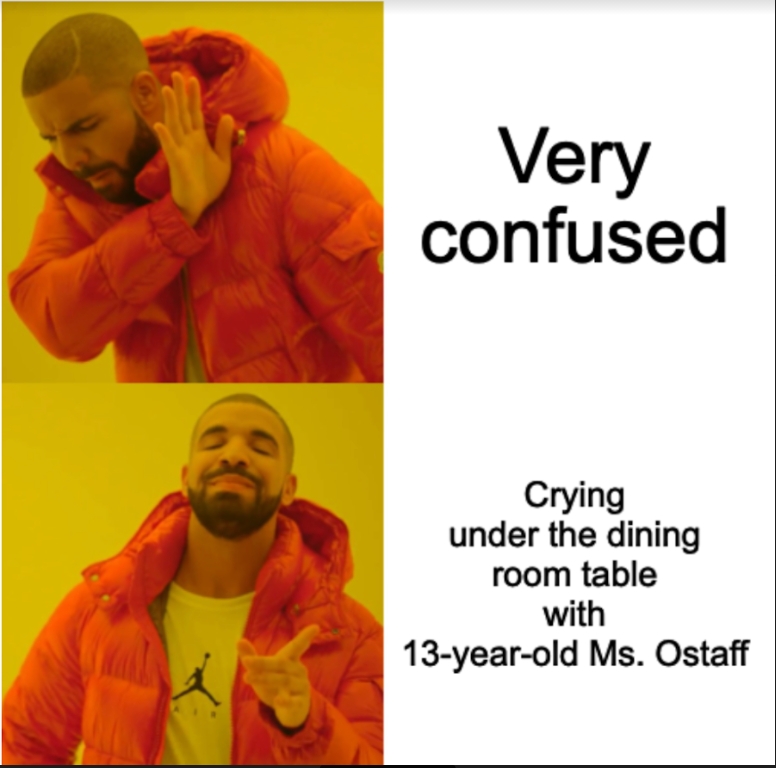 When we’re ready to get started, I ask if anyone brought me questions, and sometimes they do. I always start with those, opening a blank whiteboard and working through these, step-by-step, with students. These are re-teaching opportunities, making sure that all students understand the materials. I often end these problems with a survey, asking everyone about their confidence level. The third option is frequently crying with my 13-year-old self.