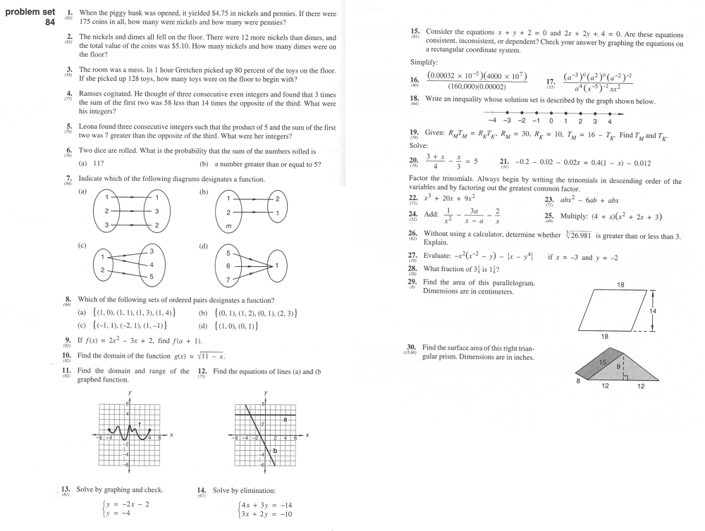 As you can see, the curricula is a tight spiral, constantly shifting students from one concept to another, and then coming back after students have had sufficient practice to add another layer of understanding. You must learn in Saxon, because you will never stop having to solve that type of problem.